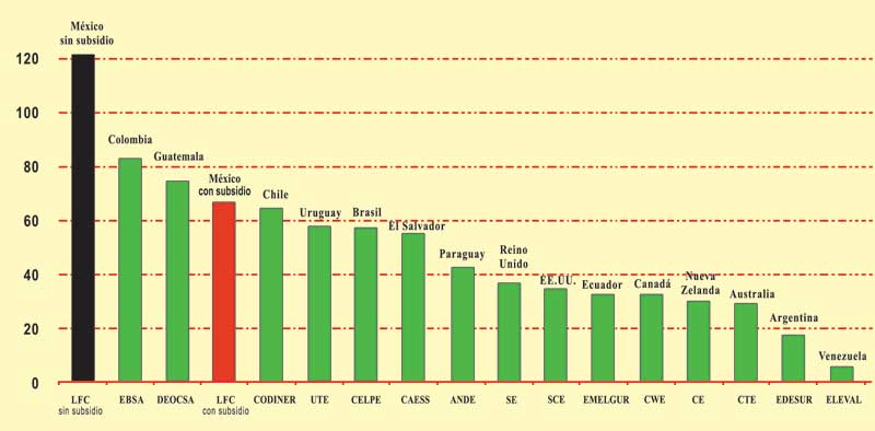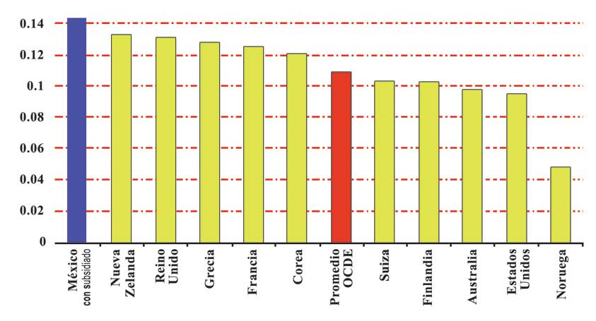 En el caso mexicano podemos afirmar que casi todo el monto que dedicamos a subsidiar el servicio eléctrico –con el considerable sacrificio que supone para las finanzas públicas– apenas sirve para compensar sus altos costos. Si pensamos que nuestra industria eléctrica podría ser al menos tan eficiente como la del promedio de los países de la OCDE, lo anterior significa que prácticamente todo el subsidio mexicano ha sido un subsidio que no sirve principalmente para compensar la ineficiencia de nuestra industria eléctrica, pero no significa verdaderas ganancias para el promedio de los consumidores mexicanos. Ciertamente se trata de un descuento muy grande sobre el costo real del servicio, pero casi todo el descuento se va en compensar un costo muy alto. Lo cierto es que los subsidios otorgados al servicio eléctrico mexicano apenas sirven para compensar la diferencia de los costos de nuestra industria eléctrica y los prevalecientes en países con industrias más eficientes.