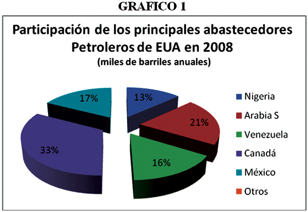 Fuente: elaboración propia con base en: EIA, “ U.S. Imports by Country of Origen” http://tonto.eia.doe.gov/dnav/pet/pet_move_impcus_a2_nus_ep00_imo_mbbl.a.htm from Foreign Oil Can Improve National Security. Our Economy, and the Environment, New Jersey, John Wiley and Sons, Inc., 2008, P.95